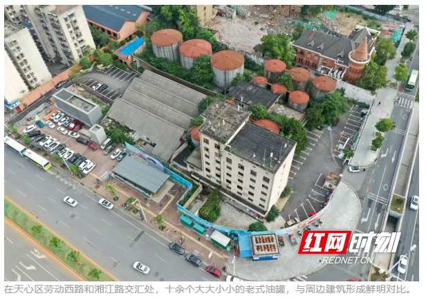 ? ? ? ??在天心區(qū)勞動(dòng)西路和湘江路交匯處,十余個(gè)大大小小的老式油罐,高的有12米,大的油罐占地面積達(dá)150平方米,與周邊建筑形成鮮明對(duì)比,獨(dú)特的建筑空間是老城區(qū)不可磨滅的城市記憶。